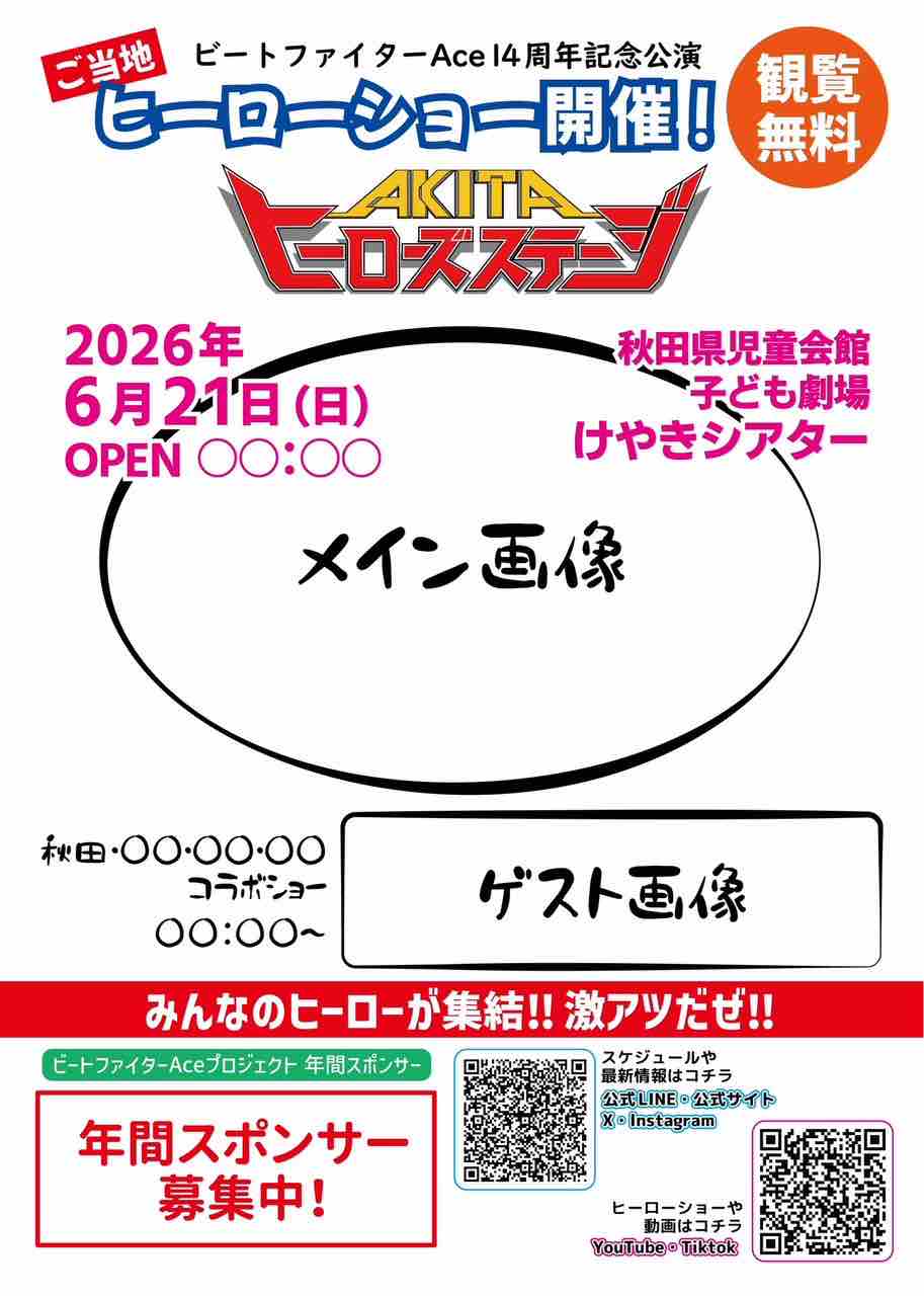 このイベントを秋田の恒例行事として定着させ、さらには【東北最大級のご当地ヒーローイベント】として成長させたいと考えています。